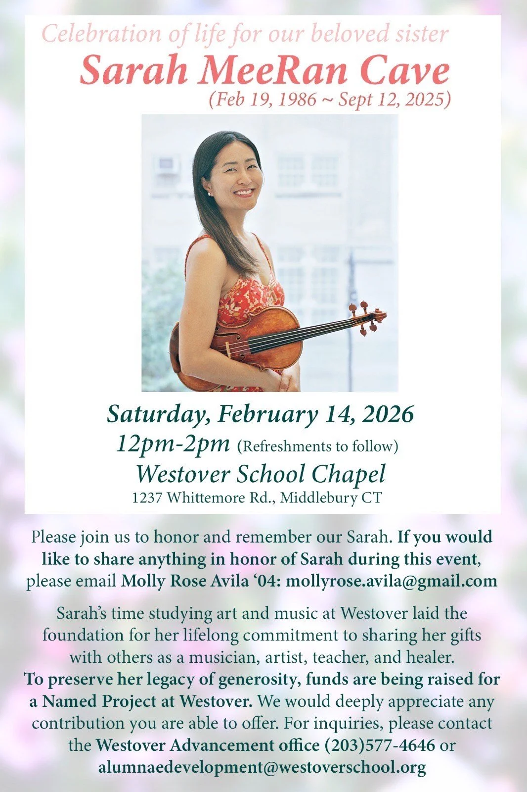 Sarah was loved by so many around the world. Come join us to celebrate and remember her.